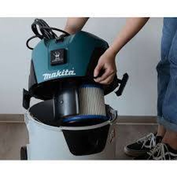 1000 W • 21 kPa • 25 l • LAspirateur (eau/poussière) connectable à la machine pour le nettoyage ou le dépoussiérageAspirateur solide et compact (eau/poussière) de classe L pour le nettoyage général ou l'utilisation avec une machine. Connexion de système de démarrage à distance pour les outils électriques. La puissance connectée totale max. est de 2300 W. Le filtre peut être nettoyé d'une simple pression sur un bouton et la machine dispose d'un réservoir en plastique de 25 litres. Kit de nettoyage inclus.